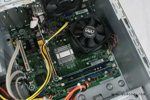 在P6235CN主机散热方面,我们可以看到风道的设计非常理想,除了机箱两面侧板上布满的散热孔外,前面板下还设计了进风通道,而机箱背面还有一个低转速的静音风扇,配合机箱内部宽敞的设计,P6235CN即使在满载的情况下也可以非常冷静的工作,由于散热的理想化也自然为静音提供了有利条件。P6235CN除了在开机进入系统前的几十秒内风扇全速运行外,其他时间均处在低速运转,这使得整机在环境噪音非常低的场所也感觉不到P6235CN的工作噪音。