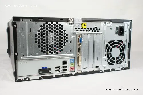 接着我们再绕道机箱的背后,来看看P6235CN到底都哪些接口。由于从硬件配置上来看,P6235CN附带了独立显卡,所以即使P6235CN采用的是G41主板,官方也并未推荐使用,而是将板载的VGA接口封住。另外P6235CN配备的是USB键盘,所以我们之前常见的PS2键盘鼠标接口也就统统淘汰掉了,确实就目前USB键鼠的兼容性来看,带宽小的可怜又不能实现热插拔的PS2键鼠已经完全没有存在的必要了,目前DIY市场上所零售的主板也能说明这一点,而之前的串行和并行打印机接口等等早已湮灭了。其他常用接口还包括了了四个USB2.0接口、千兆以太网接口和5.1声道的音频输入输出。另外独立显卡的接口包含了目前显示设备所最为常用的三大接口:VGA/DVI/HDMI。