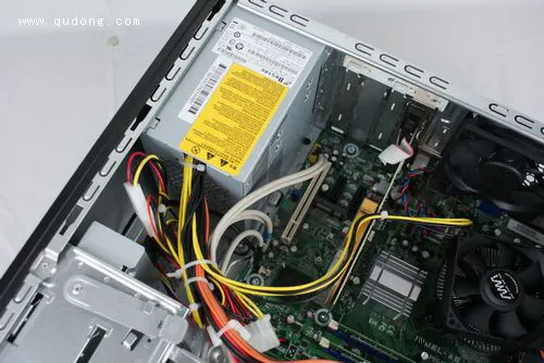 打开P6235CN的侧面板我们可以看到机箱内部的设计十分宽敞,预留的空间非常多,这对于日后的扩展及散热非我们将其常有利。首先我们的拆解就从处理器风扇开始吧。其实相比设计非常紧凑的S5235CN来说,P6235CN在拆解方面要方便的多了。