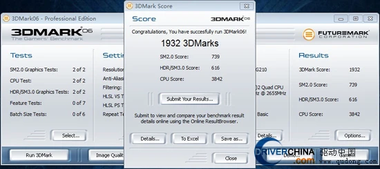 在1920X1080的最佳分辨率下我们使用3DMark06来对整机的3D性能进行测试,得分为1932,其中CPU的得分非常抢眼