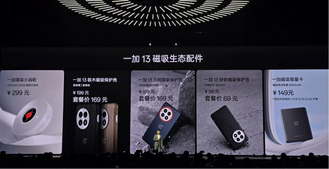 本次发布会上,一加也带来多款配件产品,彻底打通磁吸无线充电生态圈,优雅无感,轻松补电。同时还有全新极木系列配件,参与首销及购买套餐更能拥有专享优惠。