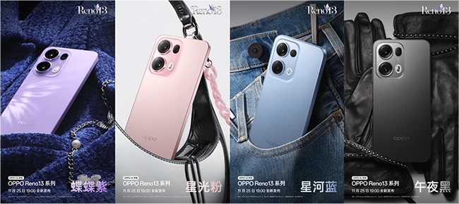 OPPO Reno13 系列将于 11 月 25 日发布,外观上将延续「超美小直屏」的标志性设计,并推出全新潮流蝶蝶紫配色。同时,Reno13 系列还将带来全面进阶的影像体验,AI 高清实况照片再进化,倾力打造更好的 LivePhoto 体验。