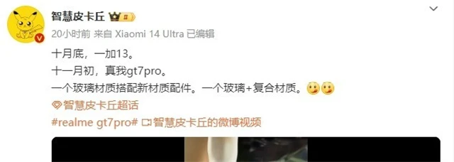 不过对于一加13和真我GT7 Pro的发布时间,两人都没有透露,不过有数码博主进行了曝料,根据@智慧皮卡丘 的爆料,一加13将在10月底发布,而11月初将迎来真我GT7 Pro。在外观材质方面,一个是玻璃材质搭配新材质配件,一个是玻璃+复合材质。