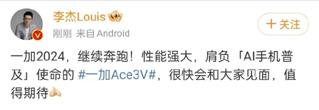 同时,能够看到该机型将会采用塑料边框和玻璃后盖的设计,这一点和一加Ace 2V还是比较近似的,对于这样的外观,网友纷纷表示至少比已经看腻了的大圆盘强。而在性能上一加Ace 3V将搭载第三代骁龙7+移动平台,5500mAh的大电池。同时,一加李杰Louis在微博上提到了一加Ace 3V将肩负“AI手机普及”的使命,看来功能上还有值得期待的地方。