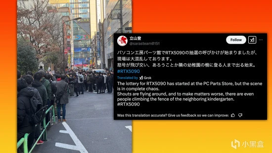 这家名为 PC Koubou 的日本电子商店,试图通过抽签的方式公平地分配 Nvidia 新款 RTX 5090 和 5080 游戏显卡。商店计划向排队的顾客分发最多 100 张抽签票,但到场的人数远远超出了预期,导致了混乱的局面。甚至有些人为了插队,闯入了邻近的物业。