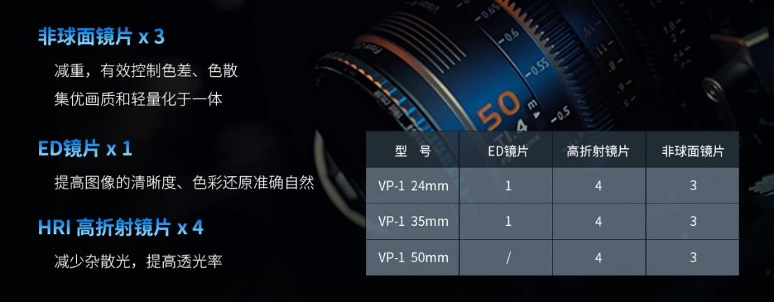 尽管具备强大的兼容性,VP-1幻影系列并未妥协光学性能。全系镜头配备24mm、35mm、50mm三组实用焦段,覆盖广角、风光、人像、静物等多元场景。通过采用非球面镜片、ED低色散镜片与高折射率镜片,在显著缩小体积(单镜头最轻仅590g)的同时,实现了高解析力、低色散与像差控制,充分满足8K超高清视频创作需求。并采用纳米多层镀膜技术,有效抑制眩光与鬼影,即便在逆光或复杂光线环境下,仍能呈现出色自然的画面质感。