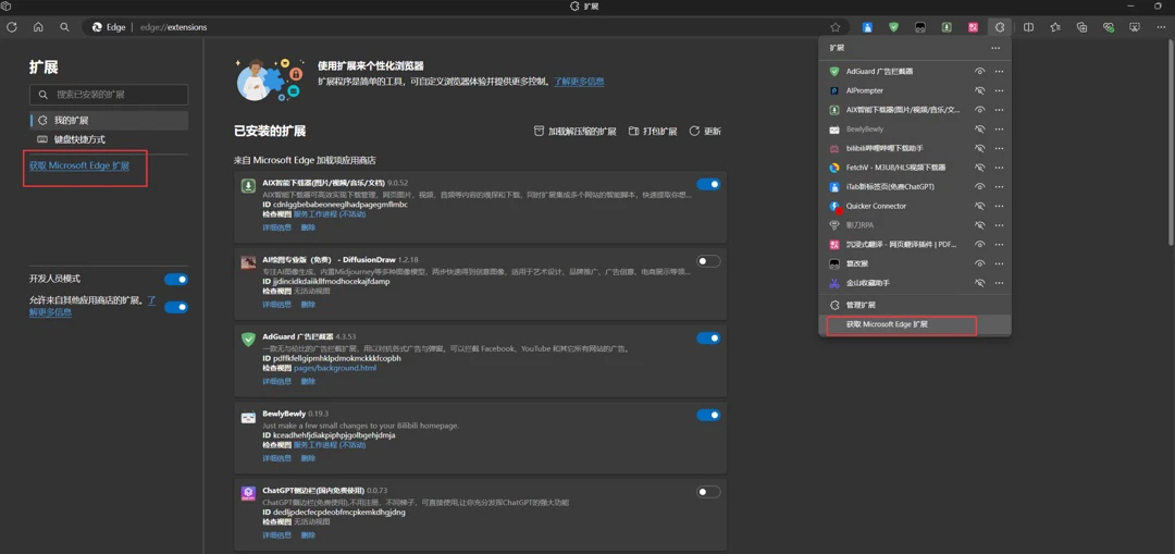 1.3、点击获取扩展,进入扩展商店(速度可能慢点,但是确实没被墙);