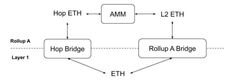 Hop Protocol 是一个与 Maker 有点类似的方案,他们方案中设计了通用的资产桥,以及通过引入「自动做市商」 (AMM) 组件和「连接器」 (Bonder) 角色,最终实现 Layer 2 网络之间的资产快速迁移。