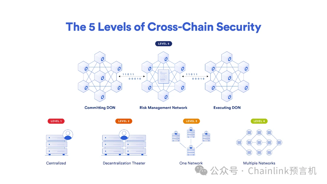 Chainlink CCIP为单一跨链通道建立多个网络,是唯一一个达到第五层(也是最高层)跨链安全性的跨链协议