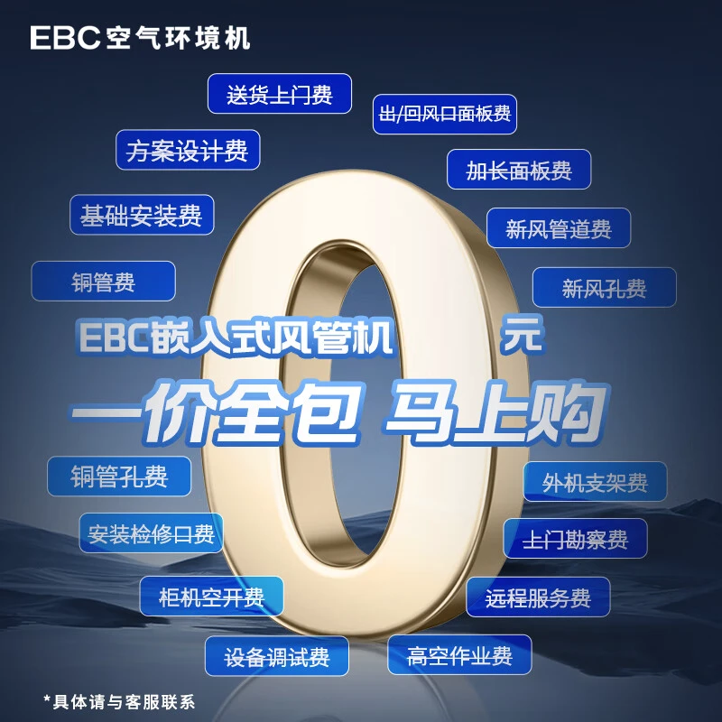 英宝纯(EBC)3匹嵌入式空气环境机新一级能效 客厅隐藏式新风风管机一拖一除甲醛净化 中央空调新风系统一体机 3匹 一级能效 嵌入式空气环境机