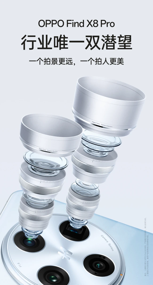 Find X8系列将先进的 AI 大模型与精密的潜望长焦镜头结合,改写了手机长焦的使用方式,让长焦也能记录氛围感。Find X8 Pro 更搭载行业唯一的双潜望长焦摄像头,一颗,让远方壮丽尽在眼前,一颗,让人像之美不限焦段。