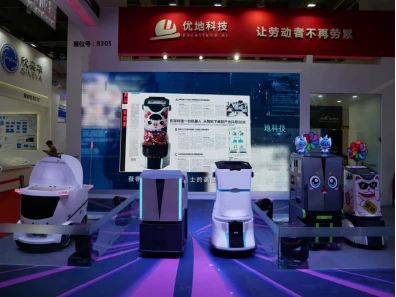 作为目前国内唯一一家同时进行室内外产品研发和生产的配送机器人公司,优地科技携旗下新品优小妹三代、优小弟三代,人气产品优小妹、优小弟以及室外机器人优小哥参加了2019世界机器人大会,并创新性的在现场进行了机器人T台秀表演,展示了优地机器人可靠稳定的行走解决方案,赢得现场观众一致好评。
