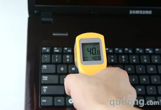 除了性能是直接反映笔记本优良的标准外,散热性的良好与否不仅说明笔记本的设计是否到位,也同时决定了笔记本工作的稳定性和使用寿命,同时对用户的使用感受和使用安全也起到了至关重要的作用。我们将三星R780的C面和D面划分为六个区域,其所有的区域均为使用者在操作电脑时所能接触到的位置,然后我们通过非接触式电子温度计对笔记本在空闲和满载两种状态下的温度进行测试统计。
