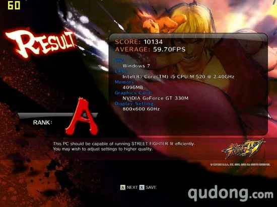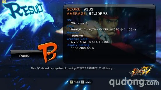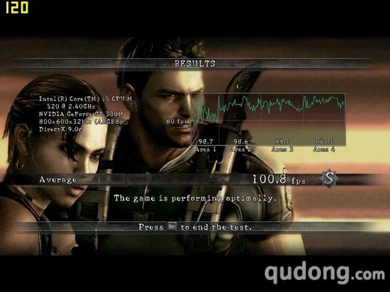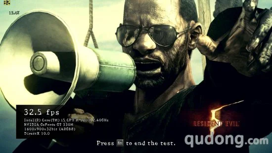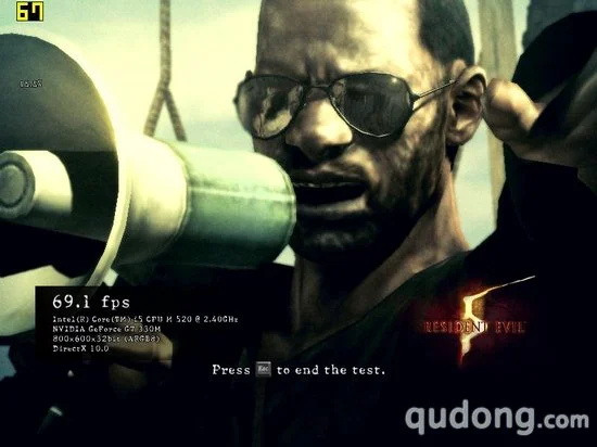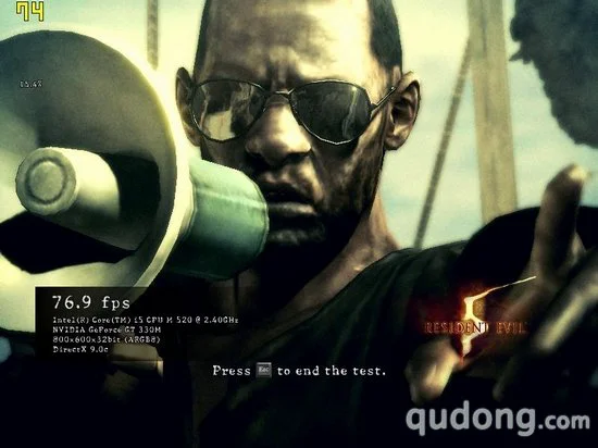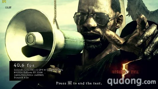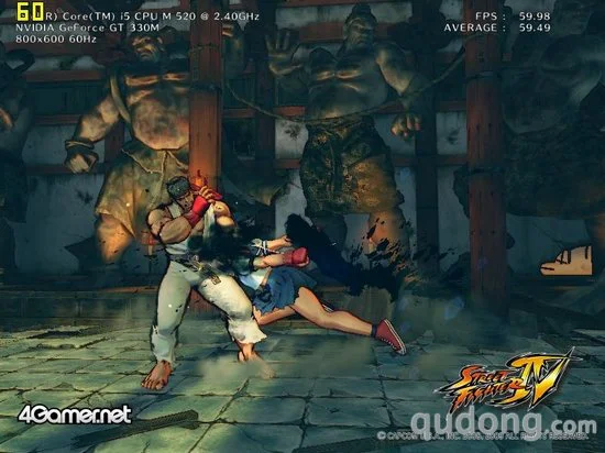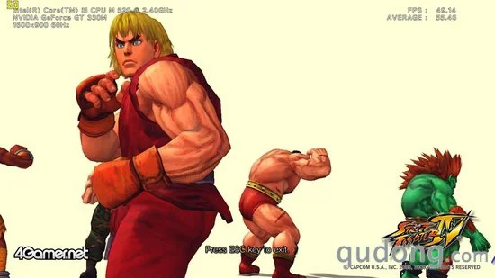游戏性能测试我们将作为性能测试的主要部分,其中我们分别将5款游戏的显卡设置采用默认设置,而后将分辨率调节为1600X900,然后进行测试,截取分值作为第一次测试的结果。之后我们再将分辨率调节为800X600进行测试,看帧数的提升程度,以及整体的性能表现。其中,《街头霸王4》、《生化危机5》以及《鹰击长空》本身具有性能检测程序,所以我们将通过自带的测试程序进行评定,而其他两款游戏则通过截图软件读取帧数。