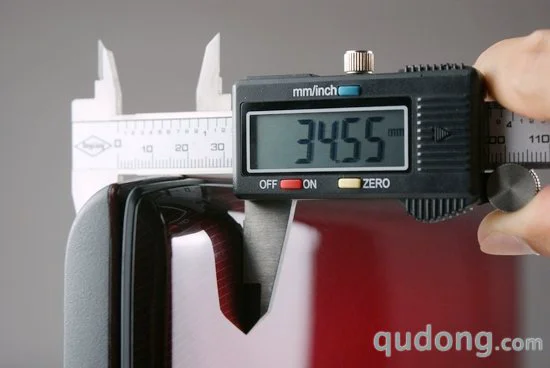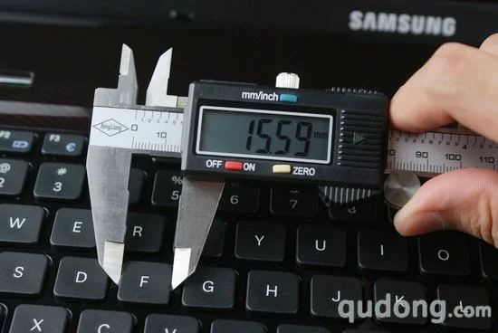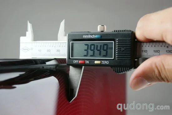 接下来我们将对三星R780的整体规格进行测量和称重,其中厚度部分我们使用电子游标卡尺进行测量,由于三星R780的厚度并不均一,所以我们通过测量选定最厚位置和最薄位置分别进行读取。