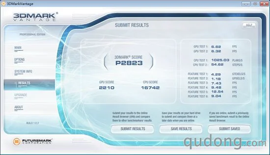 3DMark Vantage在1280x1024的分辨率下得分为P2823