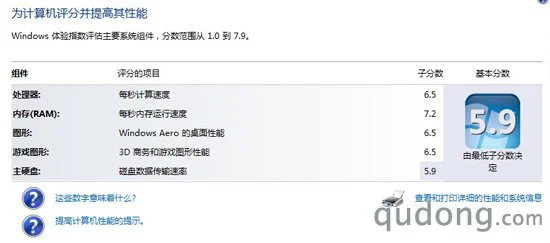 Windows7系统自带分级评定分数为5.9分,整机性能可见十分强大