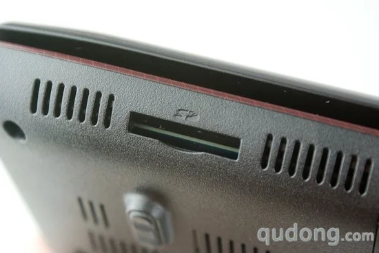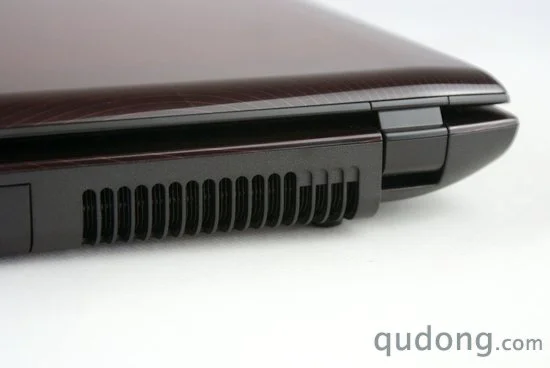 在机身前侧,三星R780还留有了多合一读卡器槽位,这对于目前的笔记本电脑而言也已经是一个必备的部件了。由于下沉转轴的设计,所以机身后侧显然已不能再安置接口,不过这里依旧是散热通道出风口非常不错的安置地。