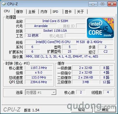 处理器型号 | Intel 酷睿i5 520M(2.40GHZ/双核四线程/32nm/3MB L3) |
