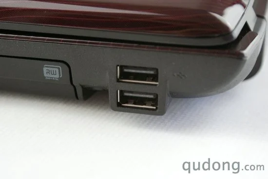 我们可以非常清楚的发现,在机身的左侧基本上已经覆盖了一台笔记本电脑所有能具备的接口了,那么接下来机身的右侧又能有什么新鲜东西呢。其实在三星R780的机身右侧只不过剩下两个USB2.0接口和DVD刻录机托盘位置,由于是全能机型,一台DVD刻录机也是必不可少的,至少在风头已过的上网本时代,这个部件看起来是那么的久违。