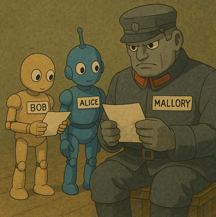 在网络安全中,我们可以使用变形密码学来改变密码的视角。有了这个,我们假设我们有一个独裁者会读取我们所有的加密数据,因此会拥有一个密钥 sk。独裁者(Mallory)会逮捕任何发送他们无法读取的秘密信息的人。为此,Bob 可以创建两个密钥:sk0 和 sk1。他将 sk0 发送给 Mallory,将 sk1 发送给 Alice(Bob 想要发送秘密信息的人)。就 Mallory 而言,他拥有密文的唯一密钥。