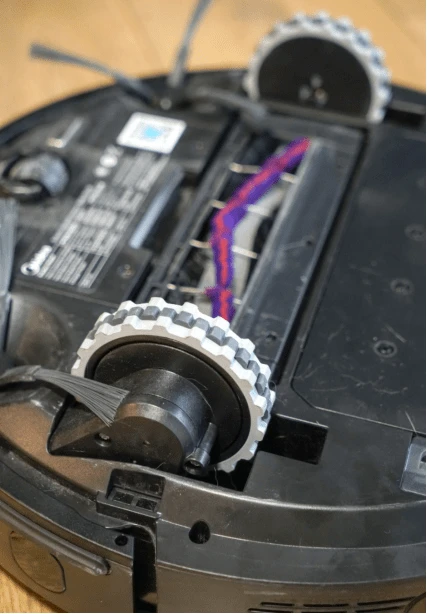 我说机身够薄,可能你会说:“市面上很多都薄。”但是你有考虑过这种坦克轮子的厚度吗?美的M7是在保证爬坡力最够的前提下,机身够薄,这一点,并不是很多机器人能做到。