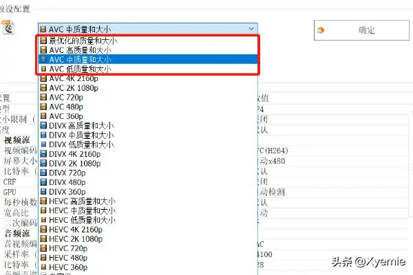 4、选择【质量和大小】通常前4项:最优化、高、中、低已能满足大多数压缩需求,可以聚焦前4项