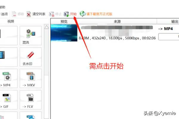 6、在转换页面中,点击【开始】,进行转换或压缩处理
