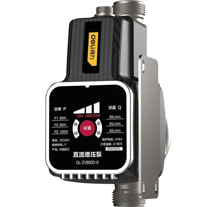 得力100W增压泵,绝对是您提升家庭用水体验的理想之选。这款增压泵的功率高达100W,扬程可达25米,流量高达40L/min,足以应对各种家庭用水需求。尤其值得一提的是,它的介质温度范围从0至90℃,适用性极广。