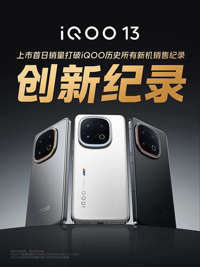 凭借自身过硬的产品力,加上顶流游戏主播的力荐,iQOO 13一下成为了目前最炙手可热的产品,iQOO官方也于今天上午发布了产品的开售战报,宣布iQOO 13上市首日销量就打破了iQOO历史所有新机销售的纪录,进一步证实了这款“性能之光”的火爆程度,“iQOO 13香”称号当之无愧。