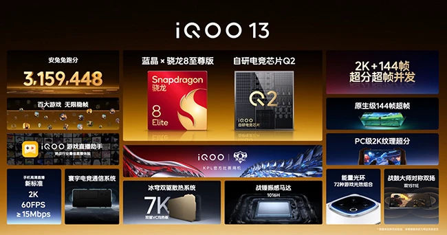 成绩是检验产品优秀与否的真理,iQOO 13之所以能取得如此傲人的成绩,离不开产品本身超强的综合能力表现。在性能方面,iQOO 13搭载了蓝晶×骁龙8至尊版,UFS4.0闪存以及LPDDR5X Ultra内存,这样的顶级性能铁三角组合,再配合上蓝厂独家的自研电竞芯片Q2,让iQOO 13的性能达到了一个前所未有的高度。其中,百大游戏“无限稳帧”,2K+144帧超分超帧并发等技术更是让用户直呼过瘾。