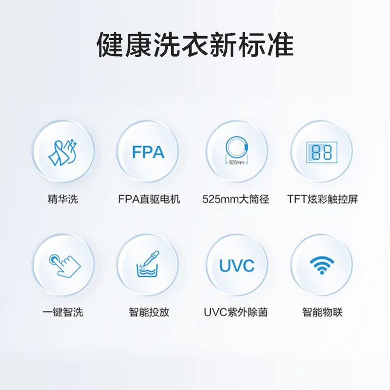 UVC紫外除菌功能是这款洗衣机的一大亮点。通过UVC紫外线对内筒进行杀菌消毒,有效去除细菌和异味,确保每次洗涤后的衣物更加健康洁净。对于有婴幼儿或对卫生要求较高的家庭来说,这项功能无疑是非常实用的。