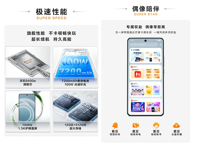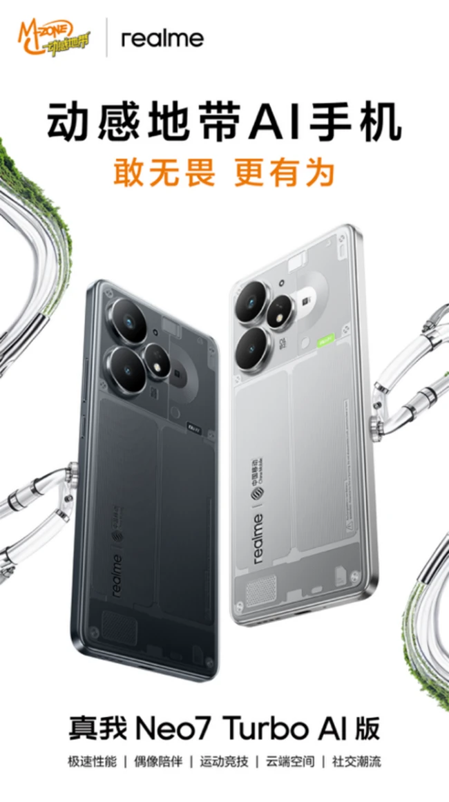 基于这样一款在设计和性能上都备受追捧的明星产品,真我与动感地带联合打造的真我Neo7 Turbo AI版,它不仅是动感地带定制机的首发机型,更承载了双方共同定义的「5S」智潮体验标准,是「硬件+内容」深度融合的完美体现。Super Speed(极速性能)由真我强大的硬件实力提供保障:天玑9400e旗舰芯与7200mAh泰坦电池,为流畅体验奠定坚实基础。而Super Star(偶像陪伴)、Super Sport(运动竞技)、Super Space(云端空间)和Super Social(潮流社交)则由动感地带专属的权益生态全面支持,将芒果TV、咪咕视频等海量数字内容与服务深度集成。内置的灵犀AI与DeepSeek大模型,以及真我独家的「AI大神辅助」功能,让这部手机成为更懂年轻人的AI潮机,Z世代的智潮生活中枢。
