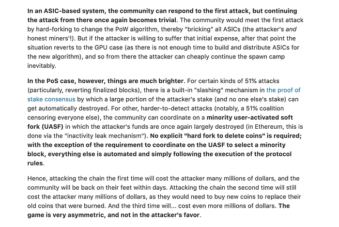 我认为 Vitalik 对 PoS 优势的描述当然是正确的,但它遗漏了两个重要的事情,特别是如果它应该被带入到以太坊的完整背景中,而不仅仅是孤立的 PoS: