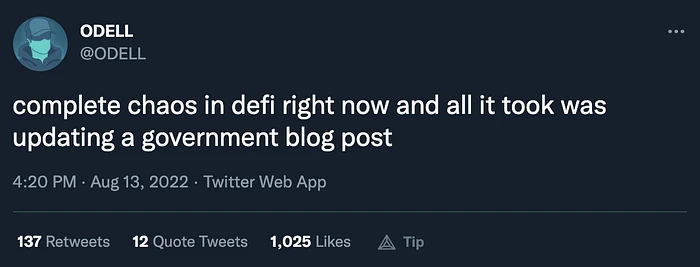 最大的 DeFi 支持者之一因为美国政府更新了一篇博客文章而无法使用 DeFi?