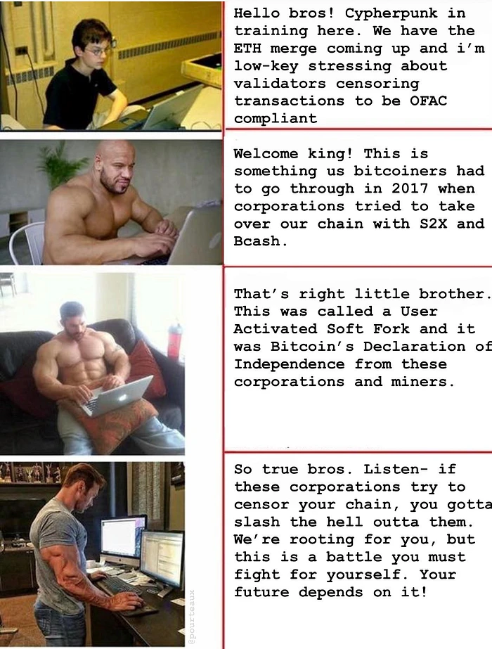 当然,这场浩劫对于那些从不相信以太坊的 “DeFi” 在任何真正意义上是去中心化或抗审查的比特币社区来说,是一个巨大的娱乐来源。