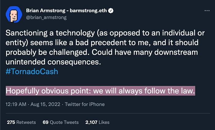 很明显 Coinbase 会遵守法律,但这意味着什么?
