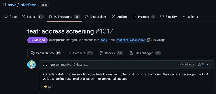 TRM Labs 是一家(不)受欢迎的公司,它通过提供被阻止地址列表的 API 来帮助许多 DeFi 协议遵守制裁。
