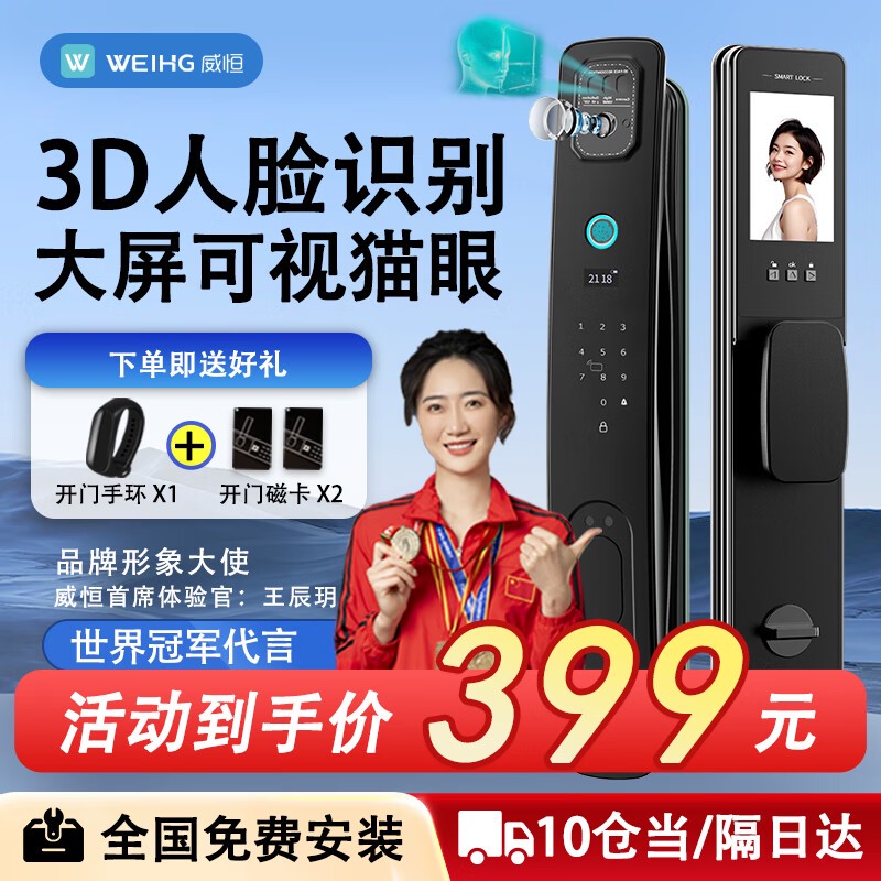 威恒RS2智能锁,一款集高科技与安全于一身的家居神器。采用3D双目识别技术,无论戴帽子、眼镜或化妆,都能精准识别。其4200mAh大容量锂电池,续航能力强,免除频繁充电的烦恼。双核智能AI独立芯片,保障运行流畅,响应迅速。