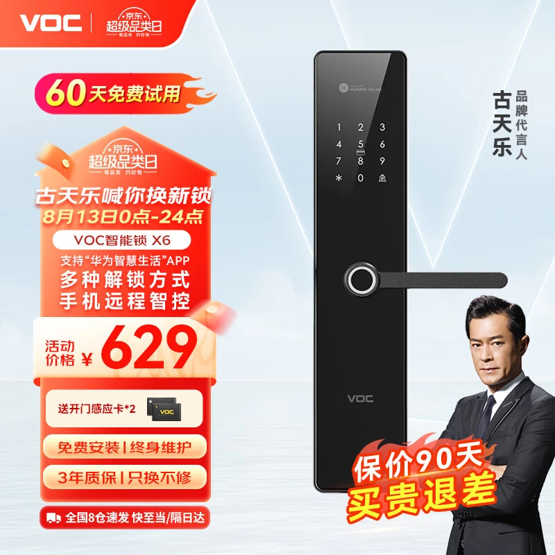 如果您正在寻找一款安全可靠、操作简便的智能门锁,那么VOC指纹锁智能锁X6绝对值得一试。这款门锁得到了HUAWEIHiLink的权威认证,确保了品质和安全性,让您买得放心,用得安心。