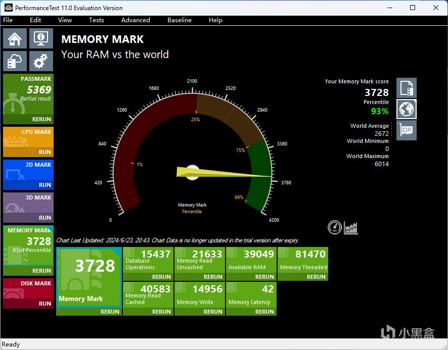 5600 MT/s(JEDEC):时序 46-45-45-90 ,电压 1.10V,AIDA64 内存测试读取、写入、复制以及延时的性能数据分82910 MB/s、75415 MB/s、75201 MB/s以及90.8 ns。Performance Test内存性能测试得分3728,通过7ZIP基准测试。