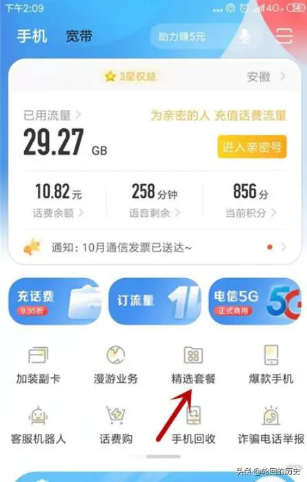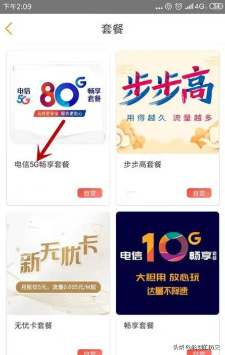 3、打开套餐界面,然后点击“电信5G套餐”。