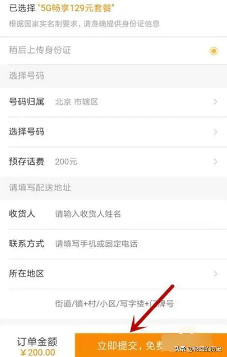 5、打开订单填写界面,编辑个人资料,然后点击“提交”办理即可。
