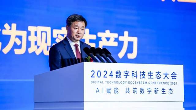 12月3日,2024数字科技生态大会在广州开幕。中国电信董事长柯瑞文在大会主论坛作题为《AI赋能 共筑数字新生态》主旨演讲。