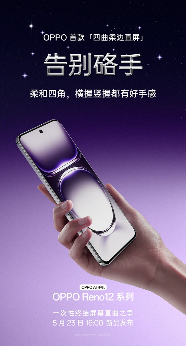 那么鱼和熊掌是否可以兼得呢?有没有一种手机?将直屏和曲屏的优势都充分地结合起来,又很好地规避两者的缺点呢?答案是有的!全新的OPPO Reno12系列采用了四等柔边直屏设计。