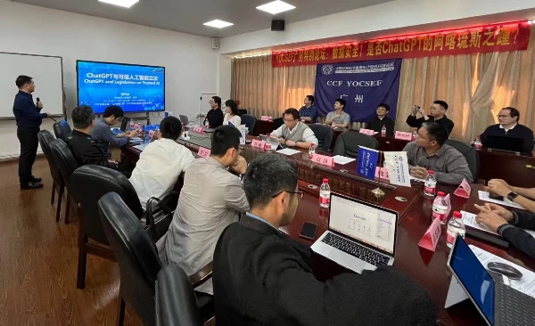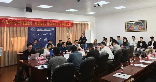 华南师范大学计算机学院教授郝天永、中山大学智能工程学院副教授沈颖、广州熠数信息技术有限公司首席运营官蓝靖分别作了引导报告;华南农业大学数学与信息学院院长黄琼,华南师范大学教授郝天永,YOCSEF广州候任AC委员、广汽研究院张天豫,YOCSEF广州委员、华南理工大学副教授陈俊颖,广州大学网络空间安全学院教授苏申,YOCSEF广州候任主席龙锦益,YOCSEF广州往届主席谭台哲等专家学者展开了深度思辨。
