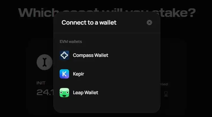 基本要素: 你需要一个兼容的钱包(如 Initia Wallet、Keplr、Leap、Compass)和用于质押和 gas 费的 INIT 代币。