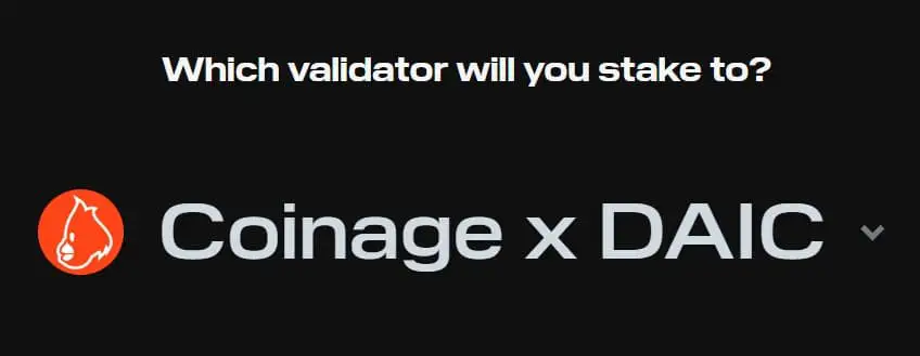 接下来,“你将质押给哪个验证者?”。单击下拉菜单/字段以从列表中“Choose a validator”。