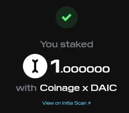 一旦交易在区块链上确认,恭喜你 - 你现在已正式质押 INIT 并支持 Initia 网络!