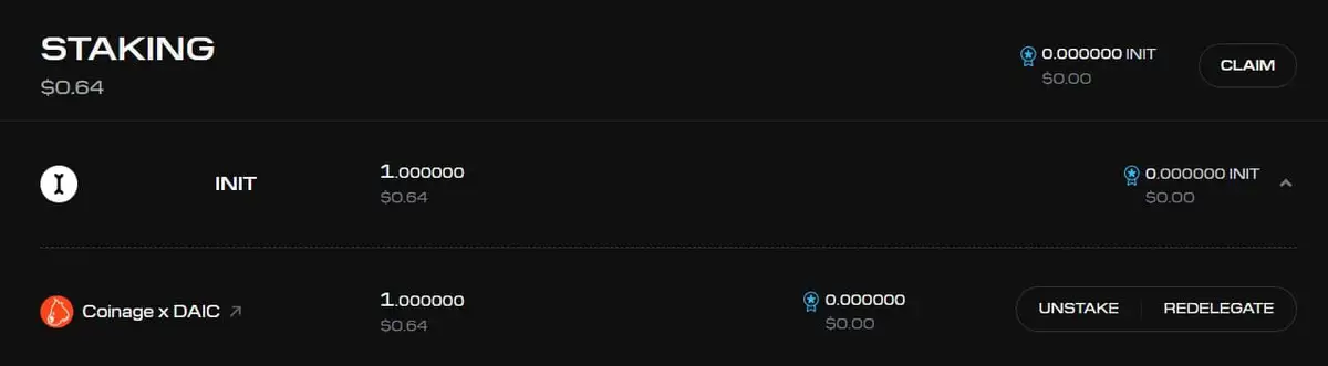 INIT: 选择此项可直接质押你的原生 INIT 代币。